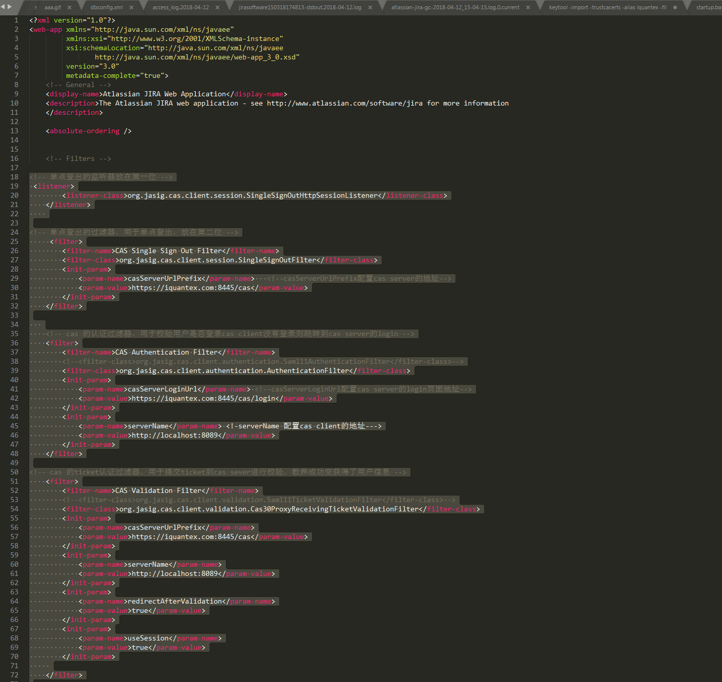 源码可知在JIRA 4.4之后认证器需要配置Jira44CasAuthenticator,而不是官网所写的JiraCasAuthenticator,由于官网没有说明,导致在此浪费了很多时间.- jira本身自带了jre,为了支持ssl,需要将cas server生成的jdk证书导入到jira目录下的jre中。ssl的证书具体百度,也可以参考我的这篇文章: