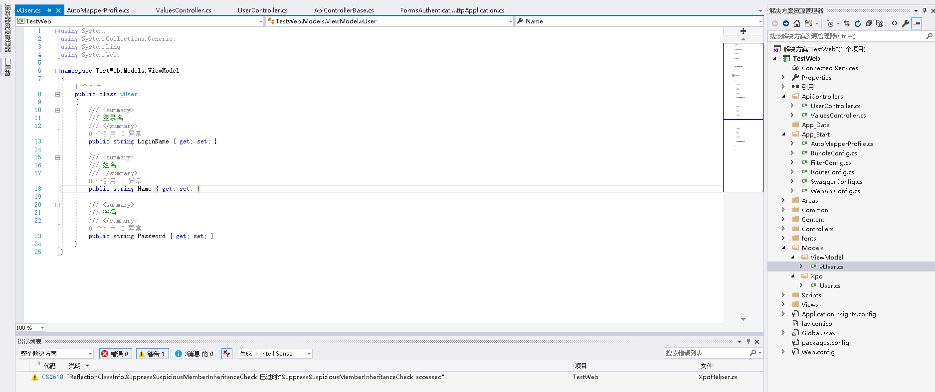 namespace TestWeb.App_Start{public class AutoMapperProfile: Profile{public AutoMapperProfile(){CreateMap<User, vUser>();}}}