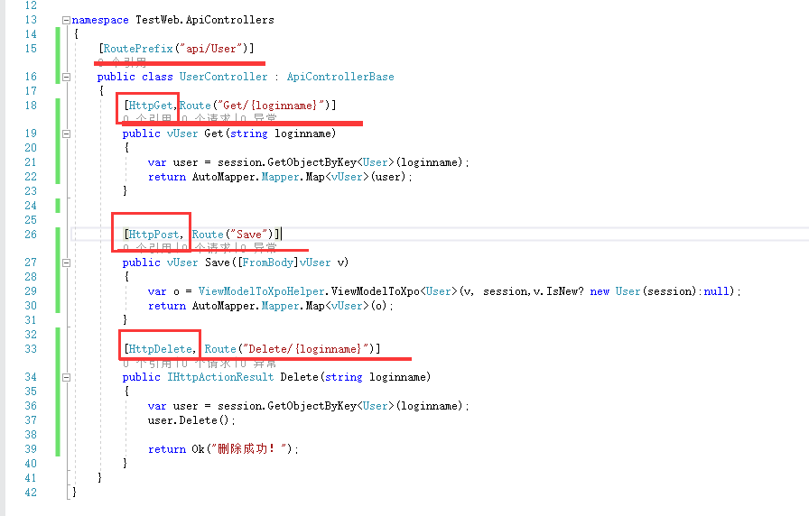 public IHttpActionResult Delete(string loginname){var user = session.GetObjectByKey<User>(loginname);user.Delete();return Ok("删除成功!");}