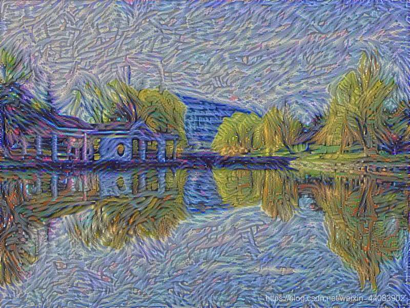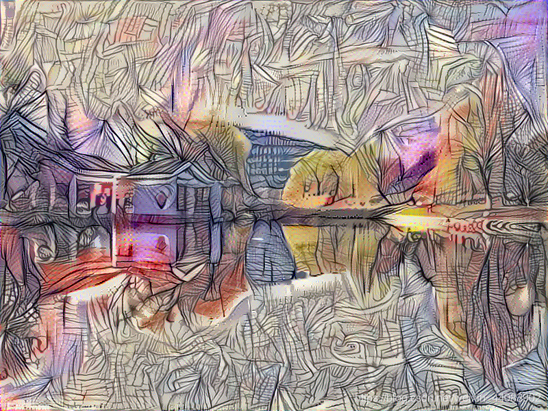 4.艺术风格:毕加索抽象风格 迁移对象:《npu启真湖》迭代次数:1050