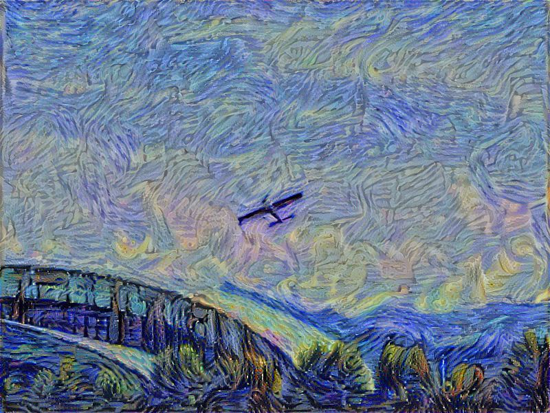 ( 梵高的绘画风格中,特有卷曲的排布的线条和星月夜的用色被这一模型学习的效果非常的好。)