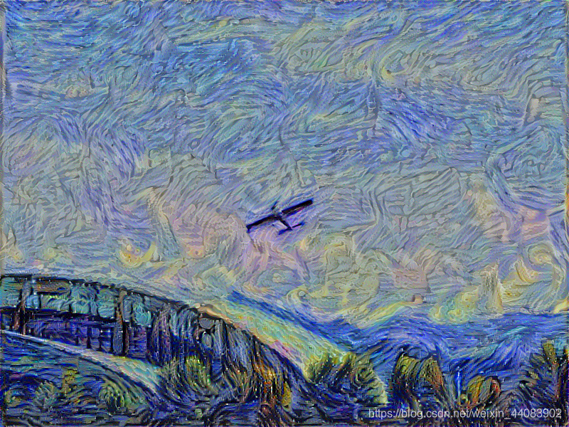 上述代码中,写入了具体的加载图片,是一个对莫奈的一张风景画的风格进行学习,并将其迁移到一张西工大的风景图片上的实现。
