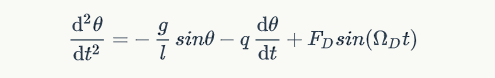 he ordinary differencial equition of a physical pendulem with driven and dissipation force is: