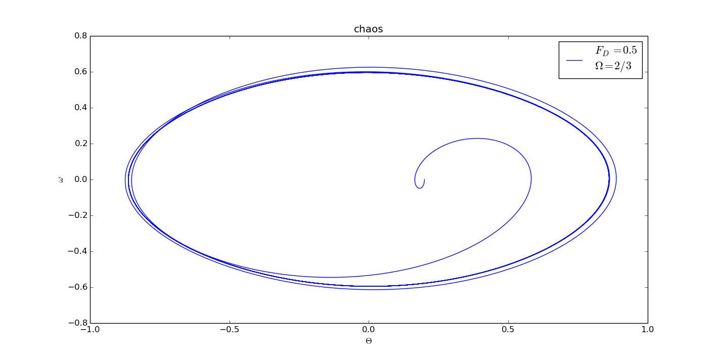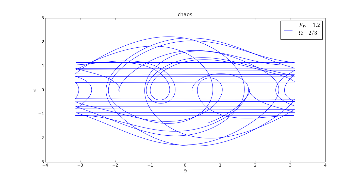 Chaos phenomenon is a seemingly random irregular movement which occurs in the deterministic system, and the system is described by a deterministic theory. Its behavior is a non deterministic one. It is an inherent characteristic of nonlinear dynamical systems, and it is a common phenomenon in nonlinear systems. And in the physical pendulum case, if we increase the driven force, for example, we will see the chaos, that is, seemingly random oscillation.