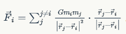 By force formula, the total force for each body force on each of its vector and other celestial bodies, for: