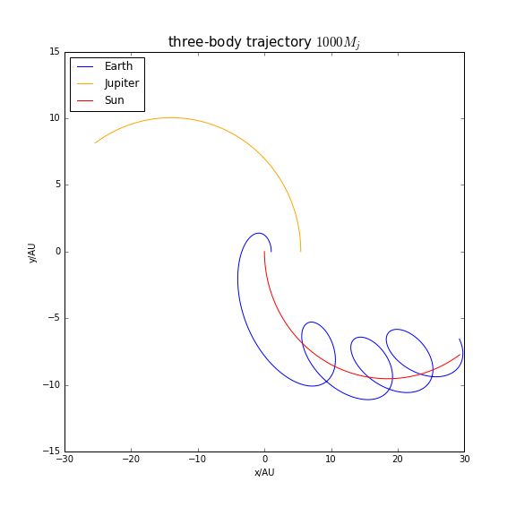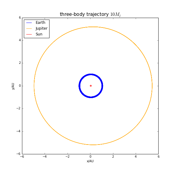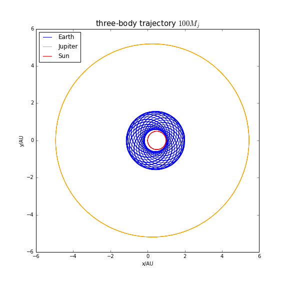 We can see that 100 times the mass of Jupiter, the sun circle circle around the earth, the earth, Jupiter.