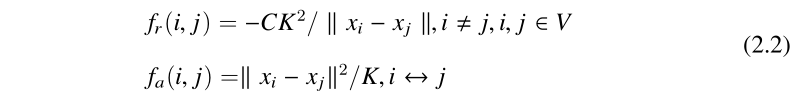 式2.2表示,并首次在布局时采用画布面积来计算得到最佳的节点间的距离。