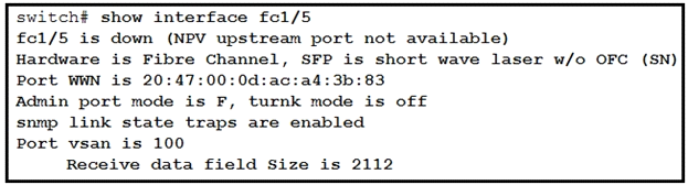 Interface fc1/5 is offline. Which action should be taken to troubleshoot the issue?