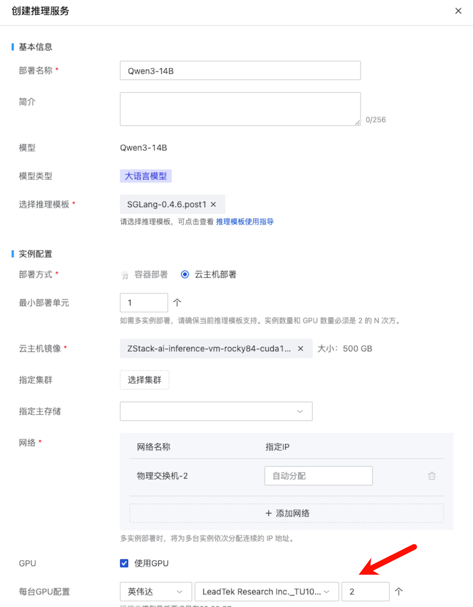 由于 14B 模型有 28GB 的权重,因此这里我们使用两张 22GB GPU 进行部署: