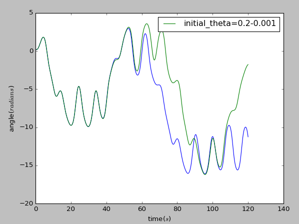 a=chaotic_pendulums()a.pendulum()a.show_result()