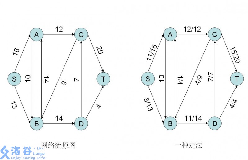 首先要对网络流重新构建,计算每条边容量与流量之差,简称残量,构成残量网络。
