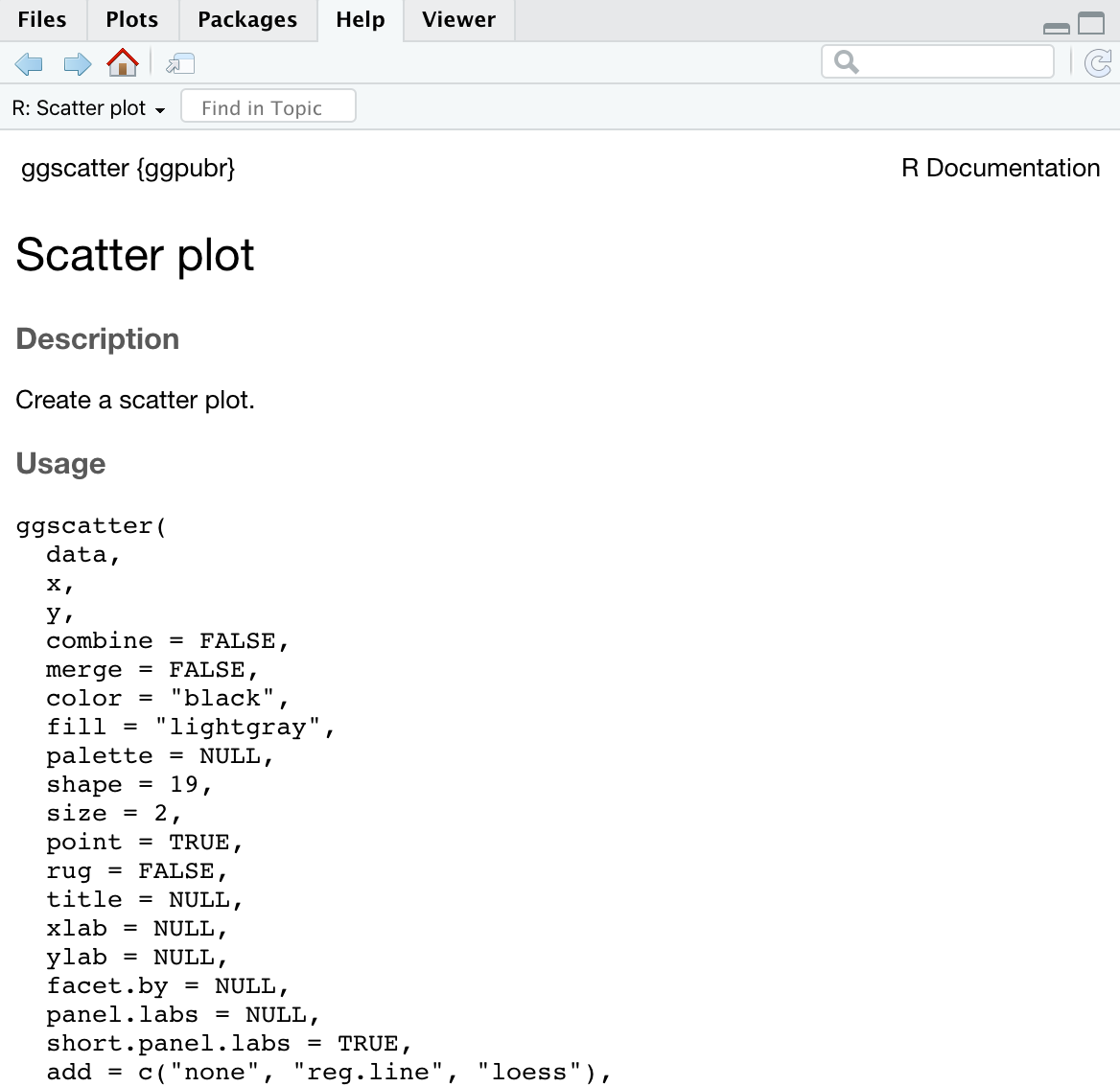 当然可以百度。但是更直接的方式是直接?ggscatter