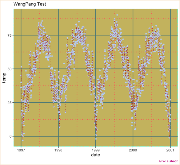 g + geom_point(color = "#C1D8F7",shape = "diamond",size = 2) + geom_line(color = "firebrick", linetype = "dotted",size = .3)
