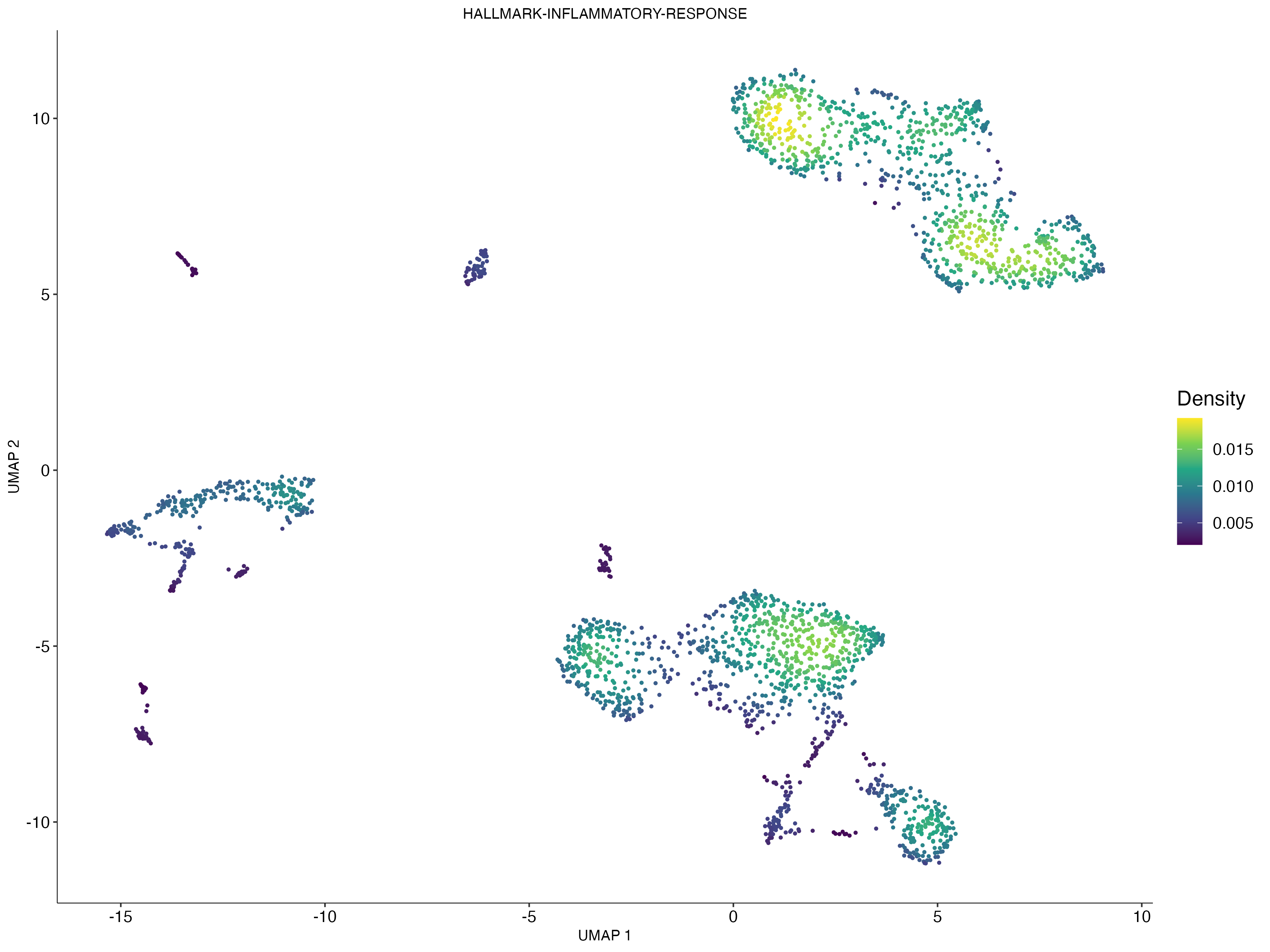 scatterplot <- irGSEA.density.scatterplot(object = scRNA,method = "UCell",show.geneset = "HALLMARK-INFLAMMATORY-RESPONSE",reduction = "umap")