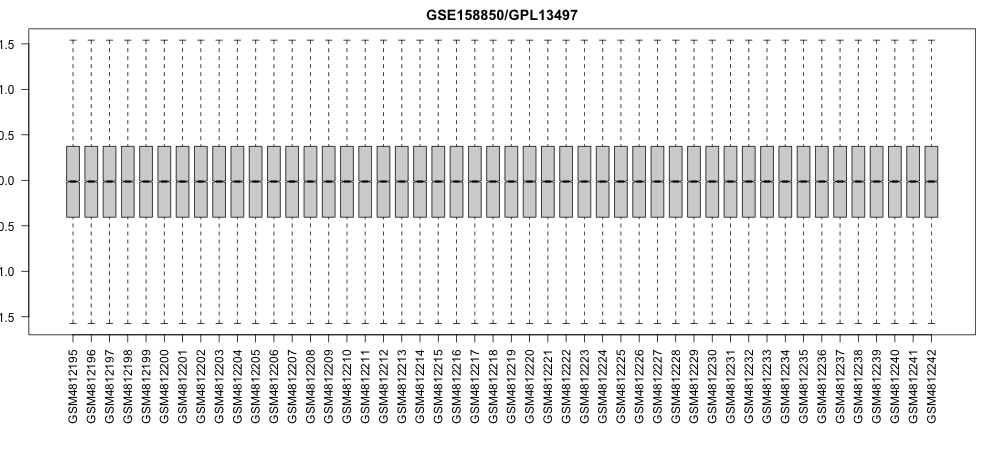 boxplot(ex, boxwex=0.7, notch=T, main=title, outline=FALSE, las=2)