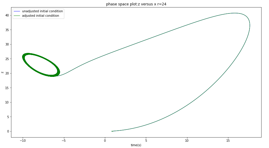 - 当r=25时做出z-y,z-x相图(仅取t=30s以后的点)代码