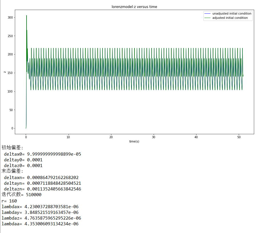 上面的式子表明,这样计算下来的李雅普诺夫指数实际上是包含了(δx,δy,δz)三个坐标的(因为有矢量的模),这区别于单独计算某个分量的李雅普诺夫指数。不过也可以用直接求比的方法计算单个分量的李雅普诺夫指数。于是,我们最应该计算出四个指数。