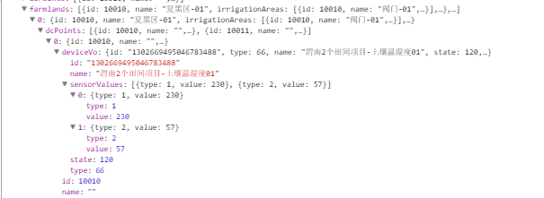 一个DcPoints列表 下有多个DeciceVo 里面又 对应了 一个 SensorValues 列表 下有多个 传感器数据 type value (多值传感器 会对应多组传感器数据)