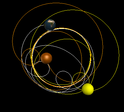 但是显然经过计算机的处理,轨道并不是闭合的圆轨道。程序运行一段时间后,轨道会变成这样