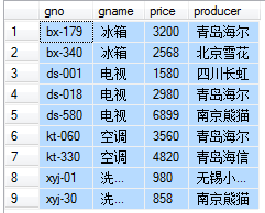select * from goodswhere producer='青岛海尔