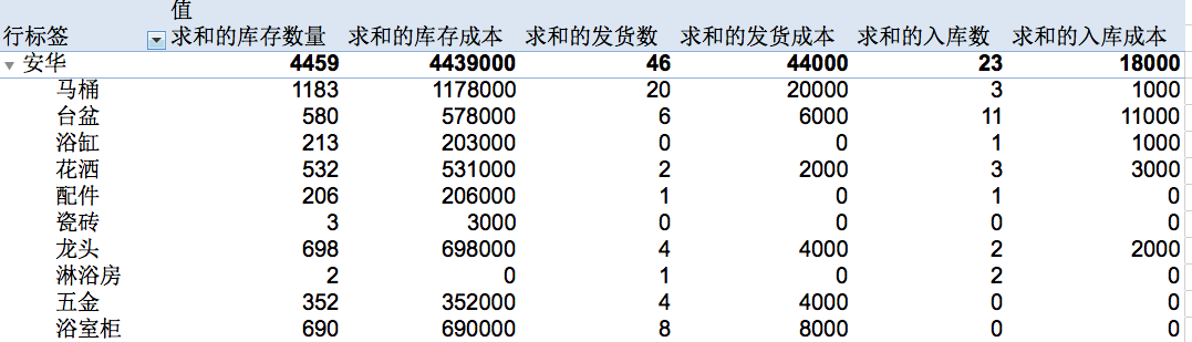 步骤三:点“品牌收发结存”工作表,点右键刷新数据,可以看到某品牌的“库存数量”“库存成本”“发货数量”“发货成本”“入库数量”“入库成本”