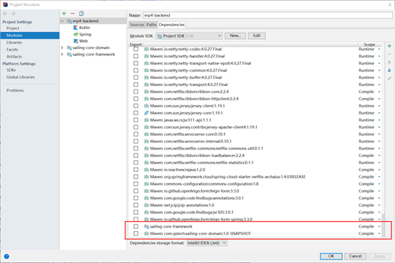 其中saliing-core-domain和sailing-core-framework为git子模块,因此需要一些额外的配置: