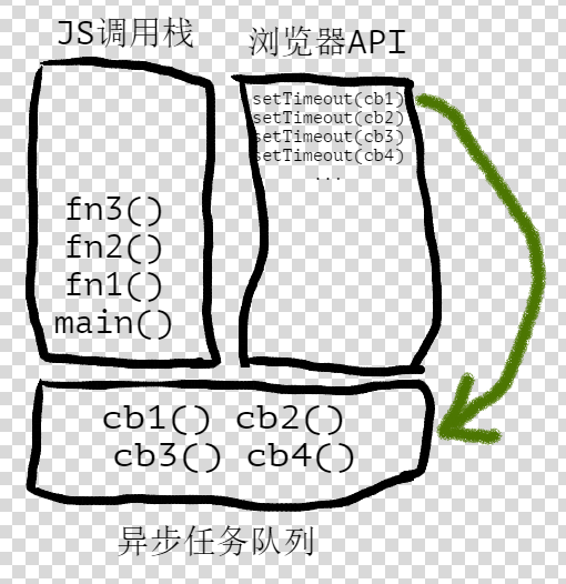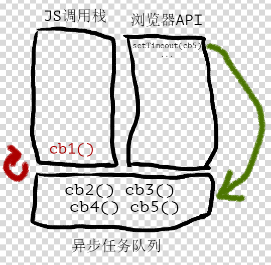 - 主栈空闲,Event触发,Event-Loop机制把队列里排在前面的回调压入主栈