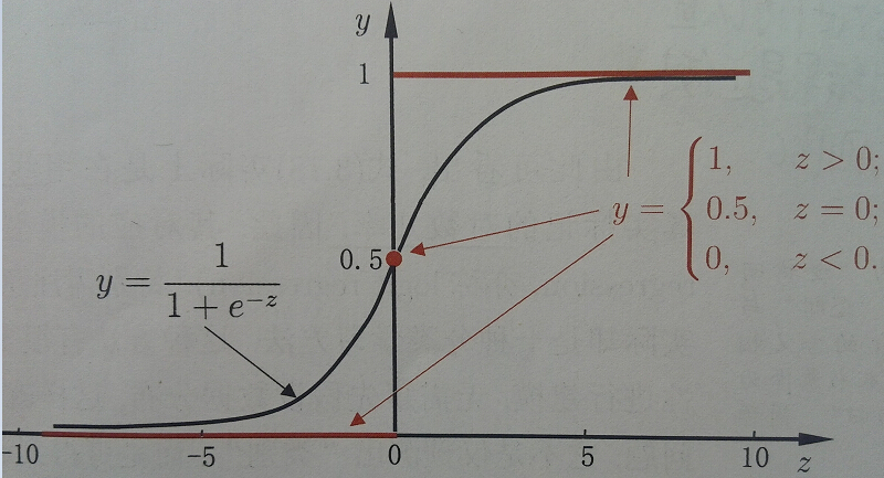 这里我们选择sigmoid函数,它取值空间为(0,1),单调递增,连续可导,导数形式非常简单,是一个在机器学习领域常见的函数。公式和图形如下: