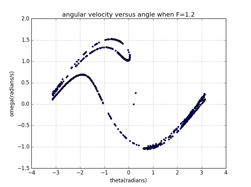 3.12 In constructing the Poincare section in Figure 3.9 we plotted poits only at times that were in phase with the drive force; that is at times , where n is an integar. At these values of t the driving force passed through zero[see 3.18]. However, we could just as easily have chosen to make the plot at times corresponding to a maximun of the drive force, or at times out-of-phase with this force,etc. Construct the Poincare sections for these cases and compare them with figure 3.9.