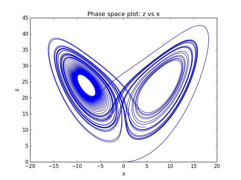 1.洛伦兹模型在x-z平面的投影轨迹: