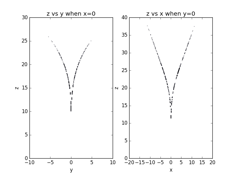 我们将在x-z平面画出洛伦兹模型的投影图,并画出x=0时,z与y的关系图以及y=0时,z与x的关系图。