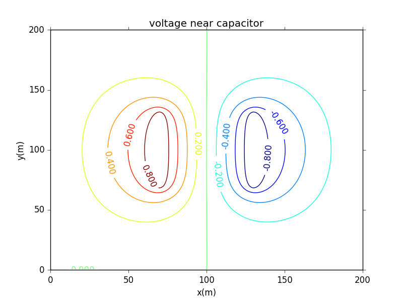 对于本体的电容器,V在z方向不发生改变,仅考虑在x-y平面的电势分布。