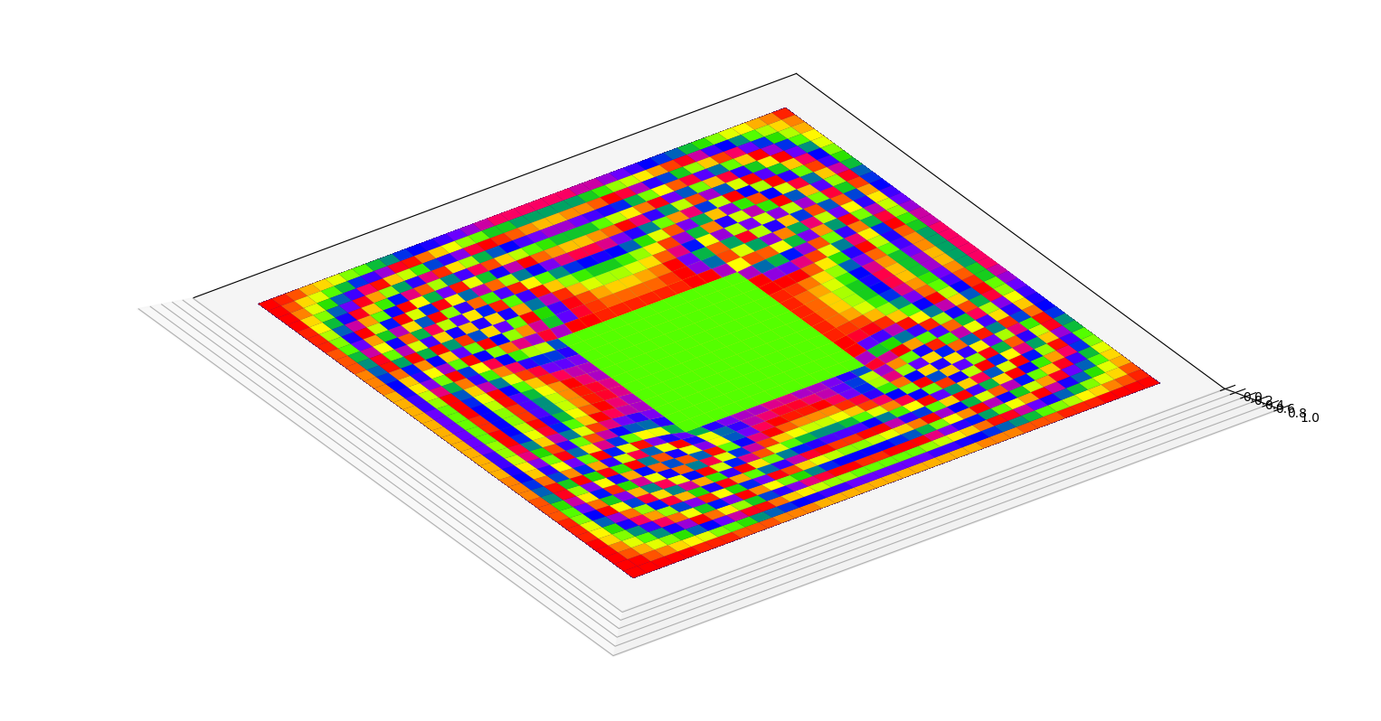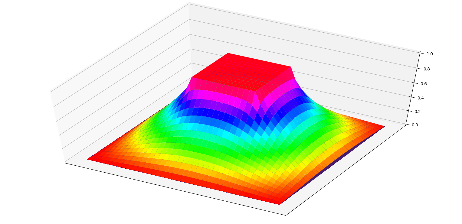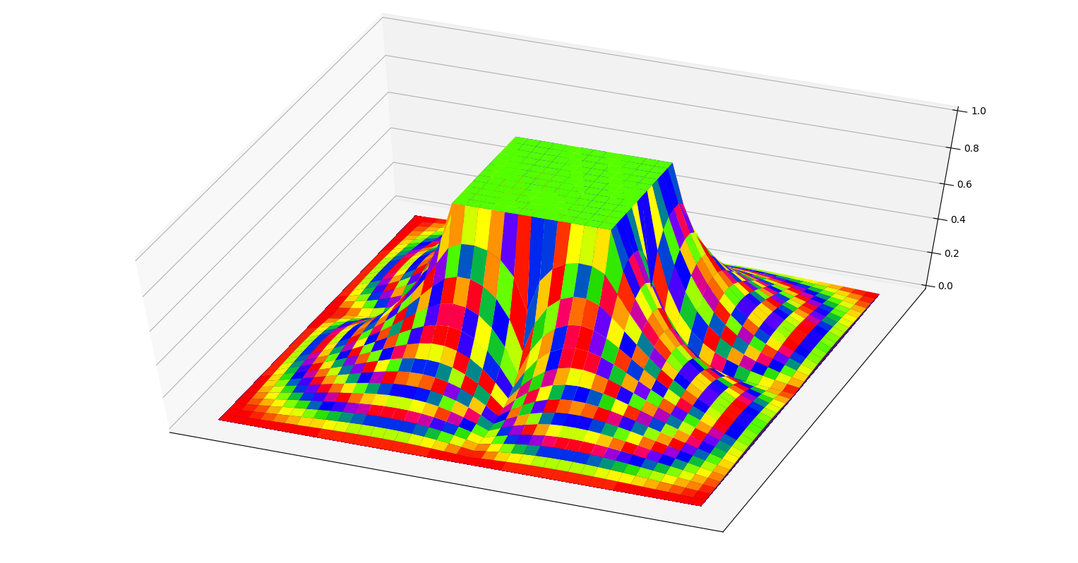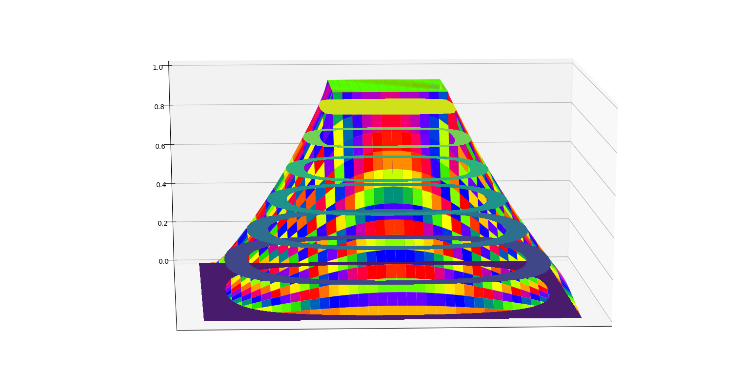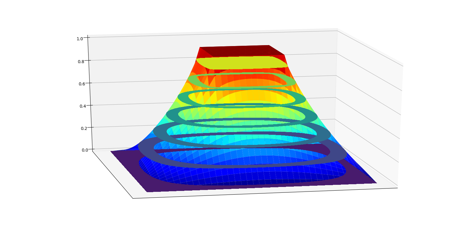 不过,做到这里忽然发现一个很严重的问题。这幅彩图中可以看出,x、y轴附近出现了一道凹下去的部分,就像山谷等高线里凹下去的山谷部分一样。显然这是不符合我们预期的。为什么???