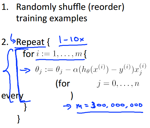 So get a example, update(gradient descent) once