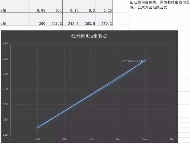 - 线性回归在数据曲线上右键->添加趋势线即可,建议将趋势线换一种颜色,并在菜单里面寻找"显示公式"选项,并勾选它