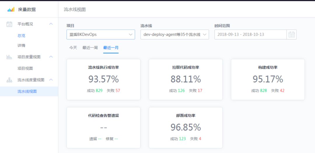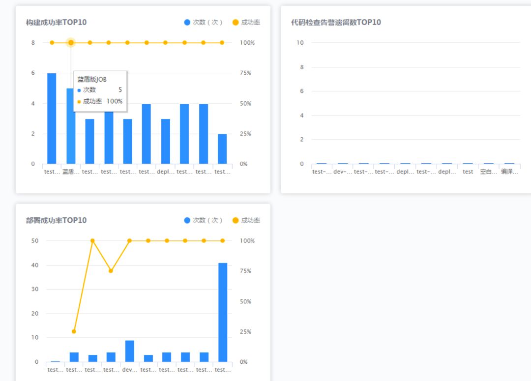 ▲ 构建成功率、代码检查告警遗留数、部署成功率