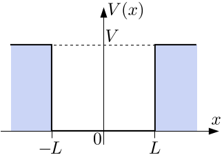 A more realistic situation is that the particle is confined to a box that extends from to . The potential is zero inside the box and infinite outsid the box called infinite square potential well.